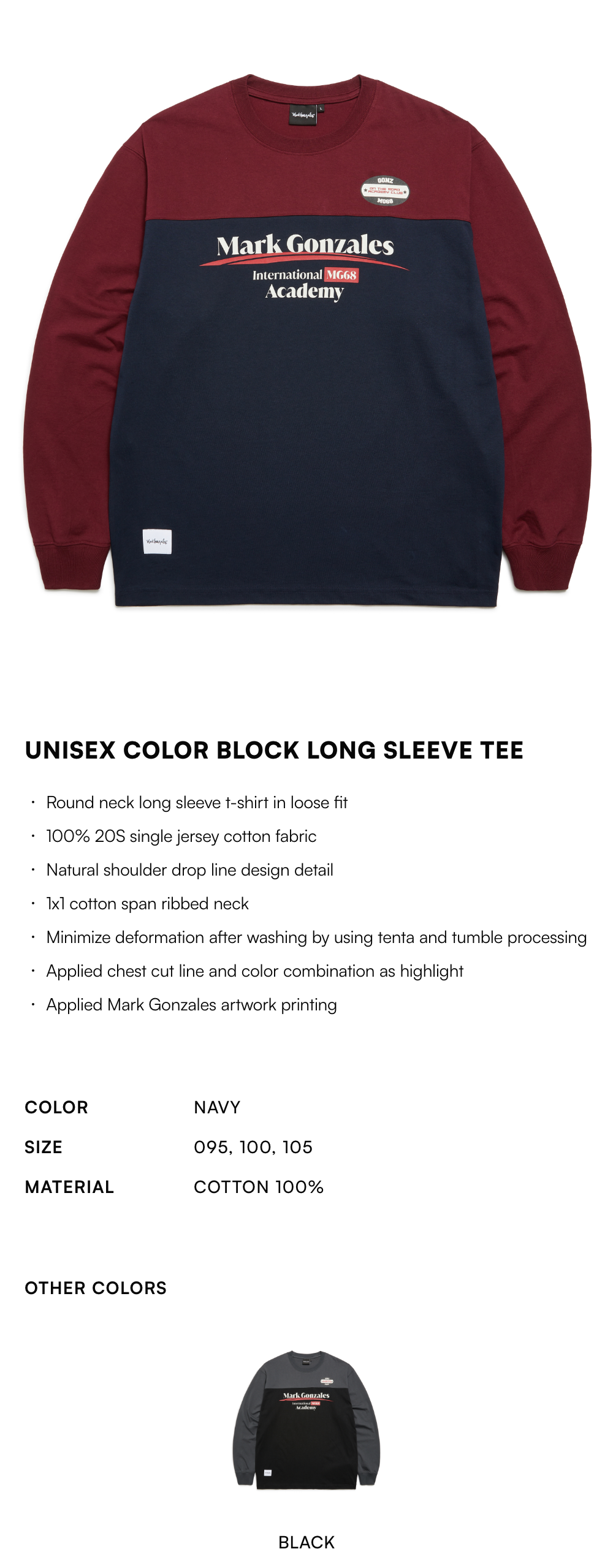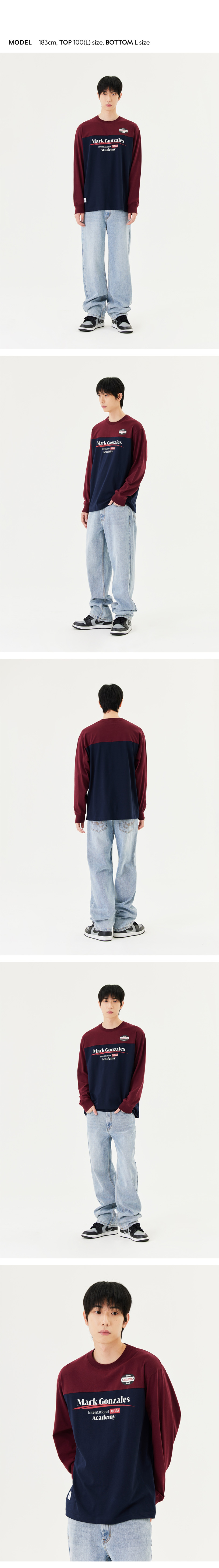 - 圓領長袖T恤配以寬鬆版型