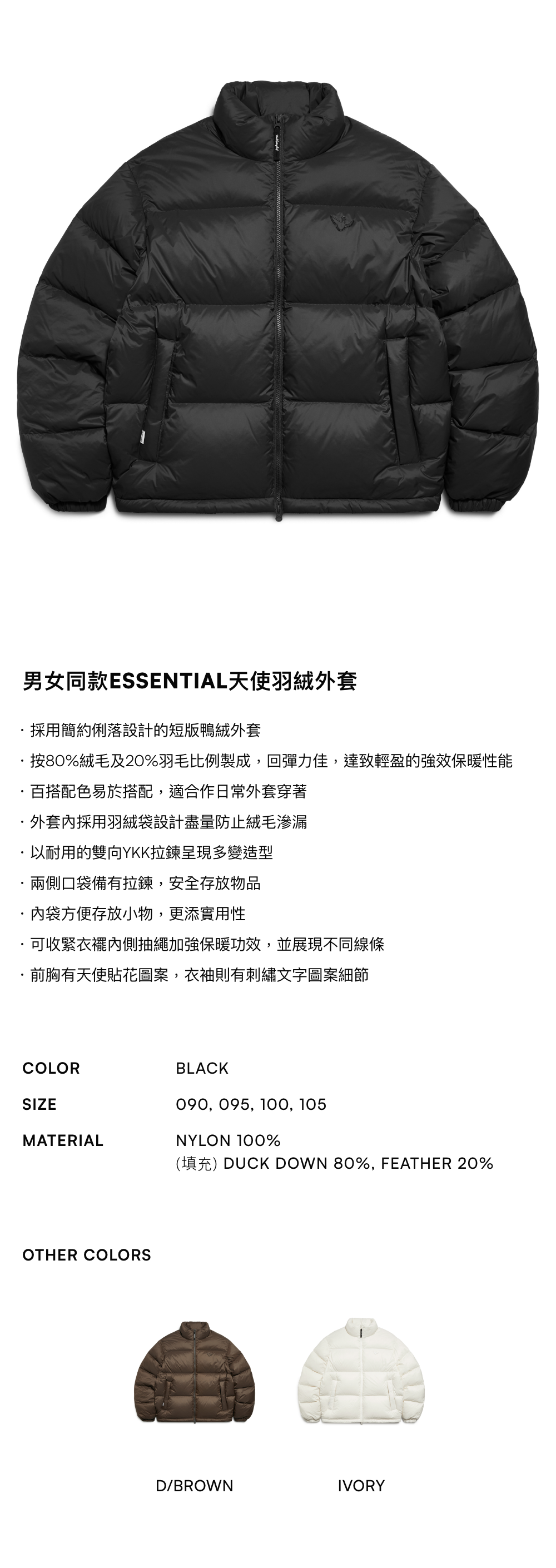 【7折】男女同款ESSENTIAL天使羽絨外套