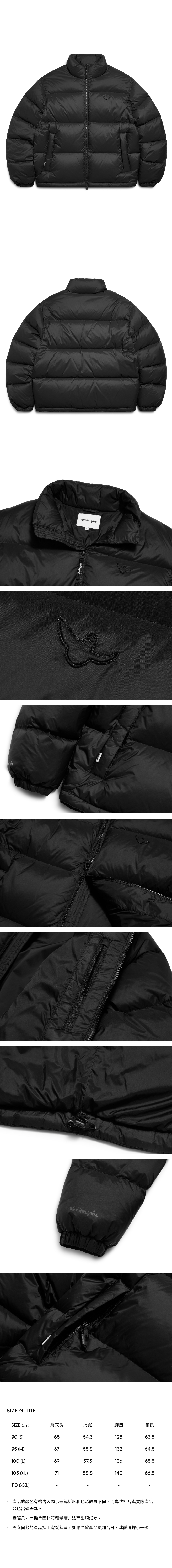 - 外套內採用羽絨袋設計盡量防止絨毛滲漏