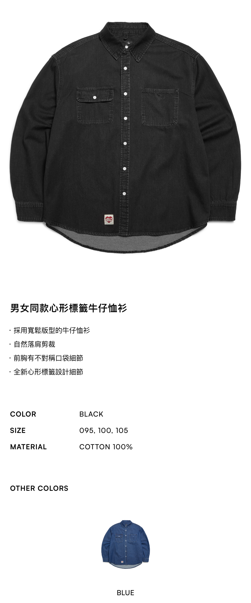 【官網88折】男女同款心形標籤牛仔恤衫
