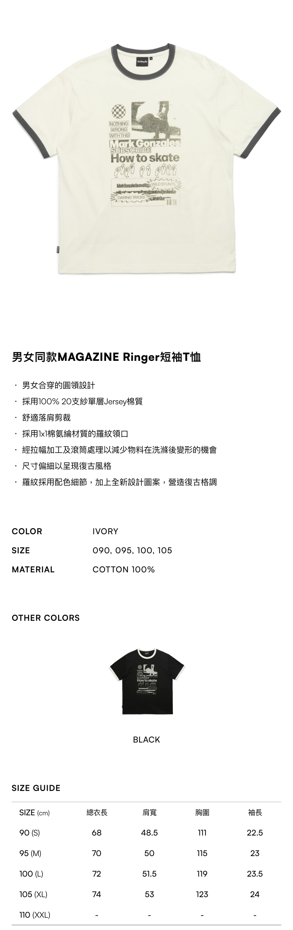 - 採用100% 20支紗單層Jersey棉質