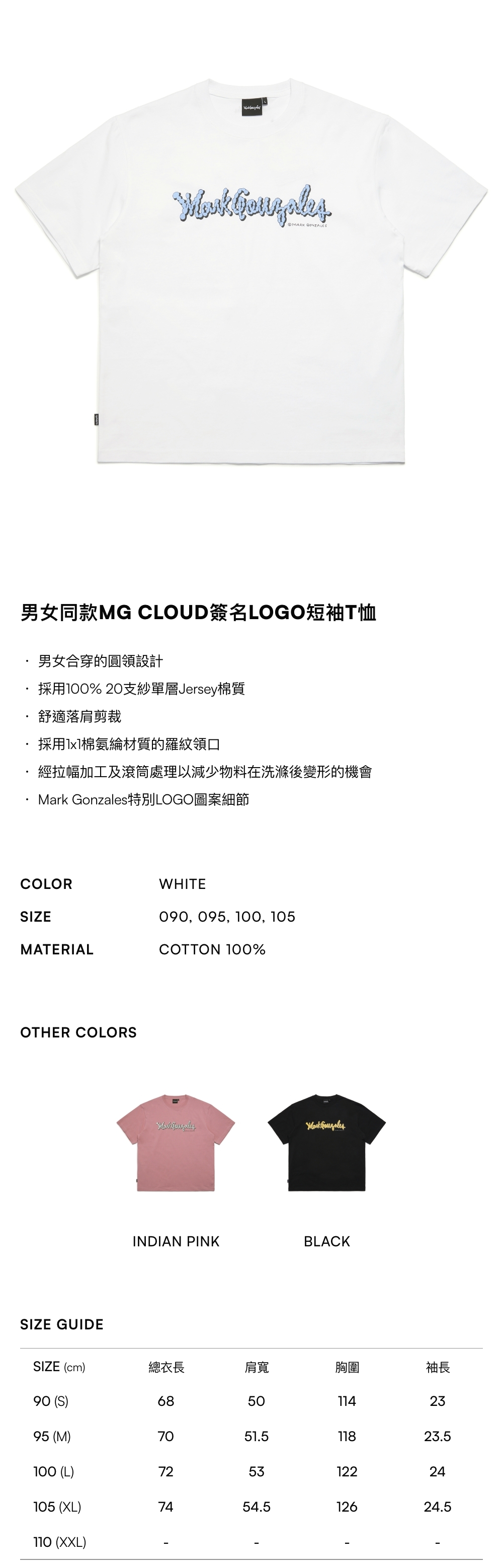- 採用100% 20支紗單層Jersey棉質