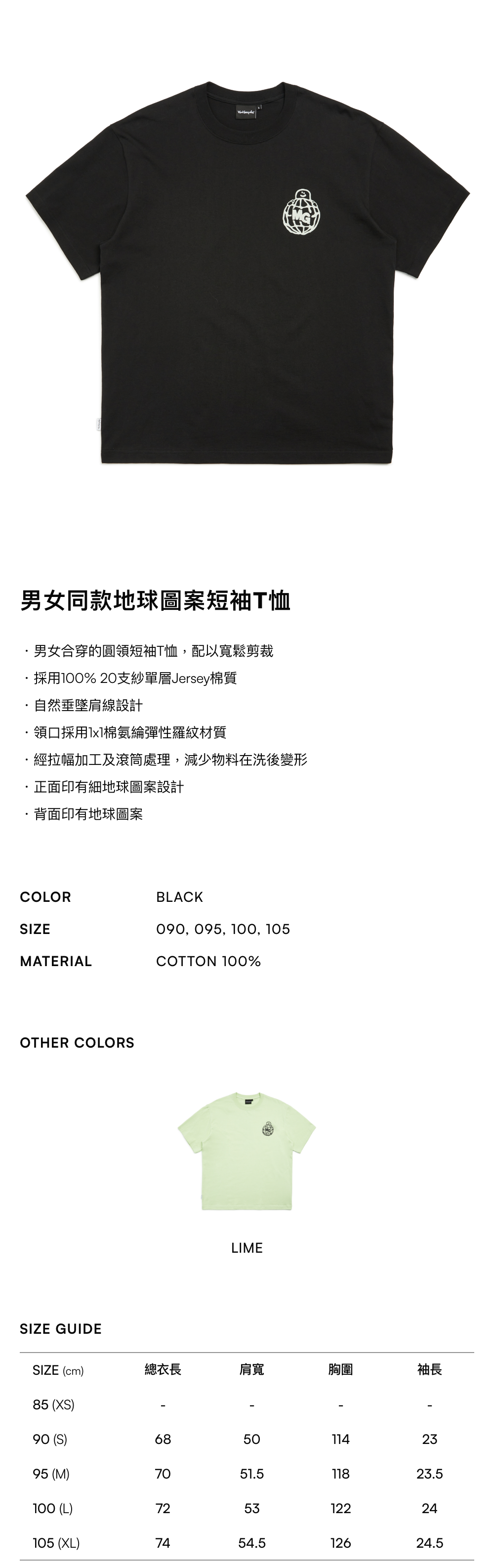 - 採用100% 20支紗單層Jersey棉質