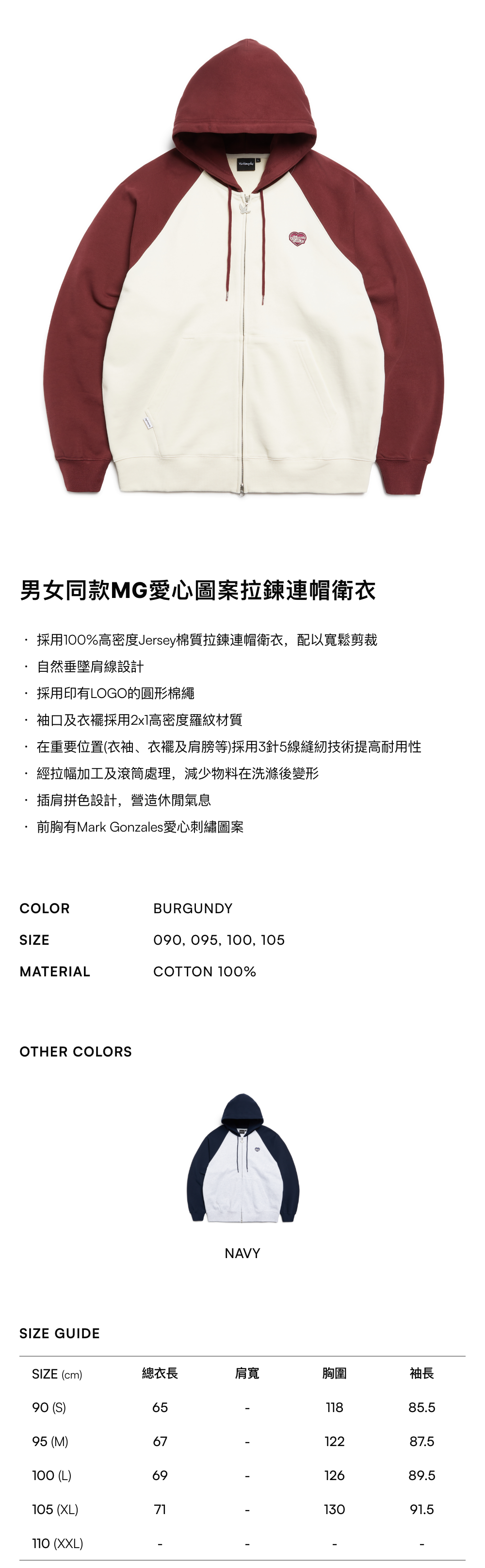 - 採用100%高密度Jersey棉質拉鍊連帽衛衣,配以寬鬆剪裁