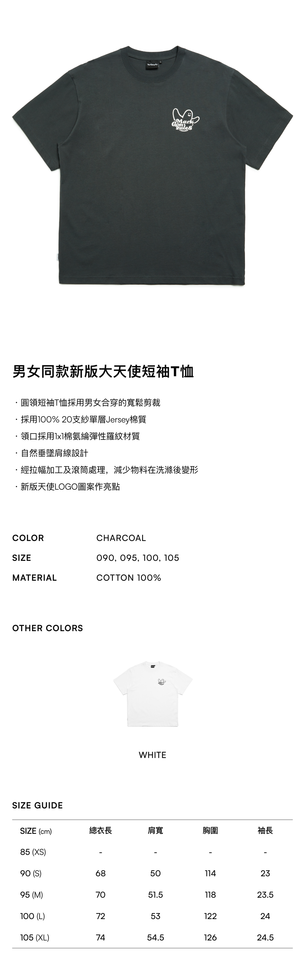 - 採用100% 20支紗單層Jersey棉質