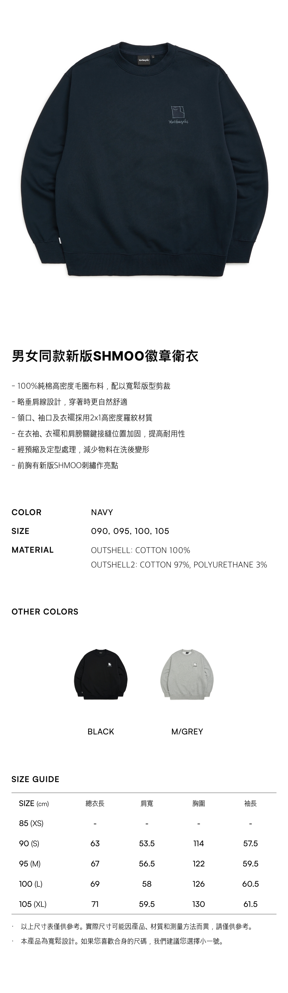 - 100%純棉高密度毛圈布料,配以寬鬆版型剪裁