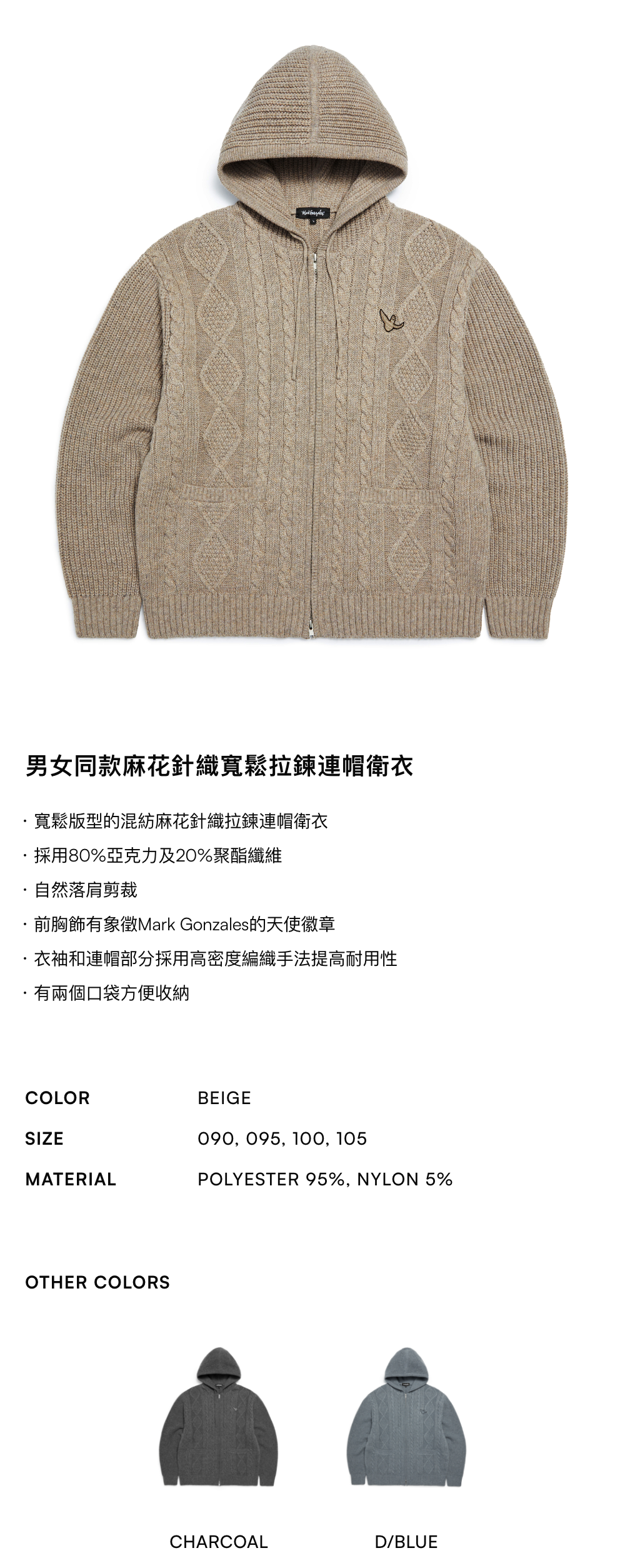 男女同款麻花針織寬鬆拉鍊連帽衛衣