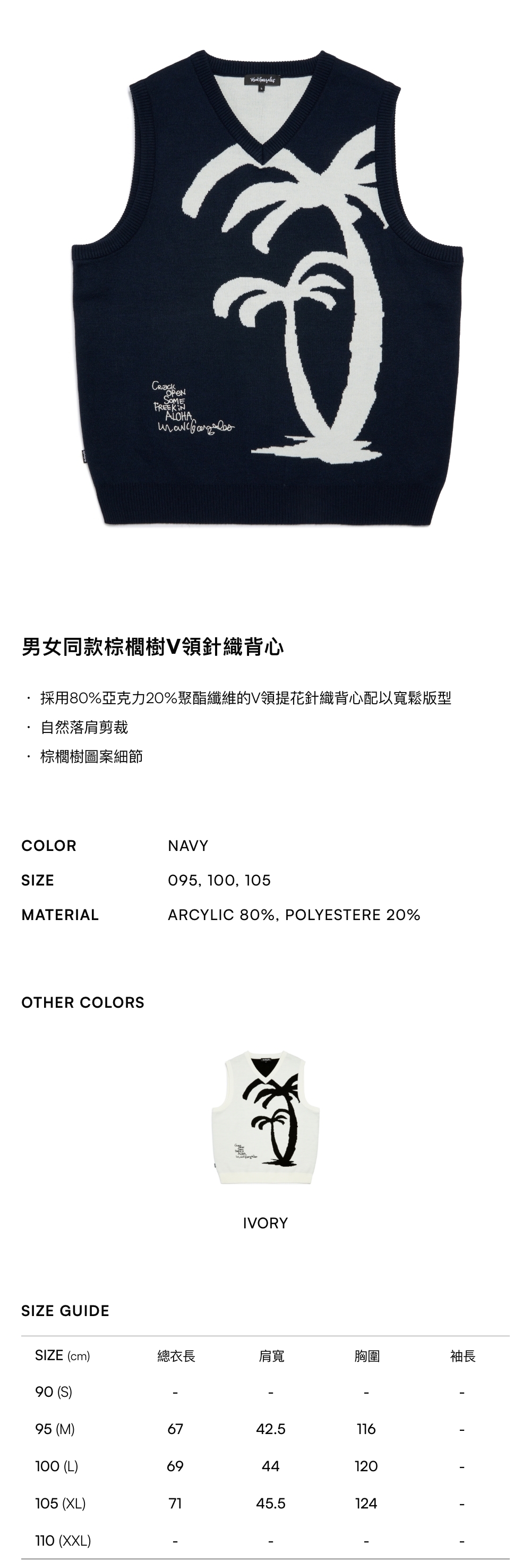 - 採用80%亞克力20%聚酯纖維的V領提花針織背心配以寬鬆版型