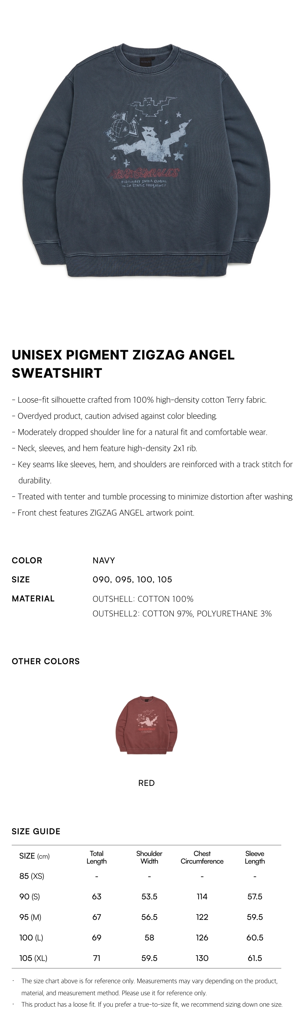 - Front chest features ZIGZAG ANGEL artwork point.