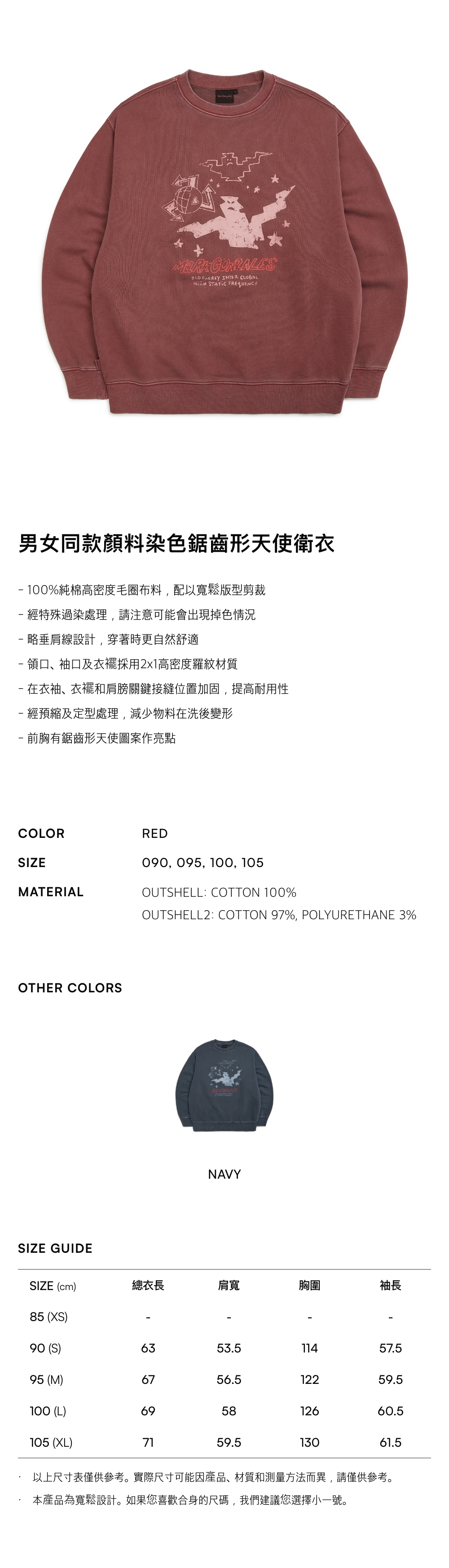 - 100%純棉高密度毛圈布料,配以寬鬆版型剪裁