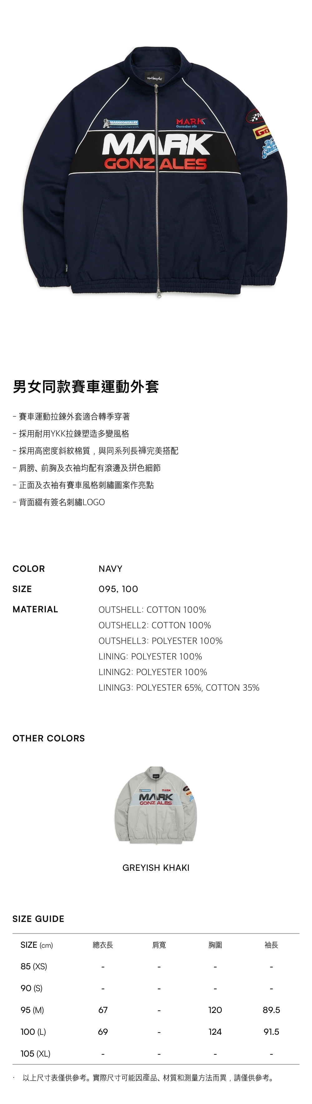 - 正面及衣袖有賽車風格刺繡圖案作亮點