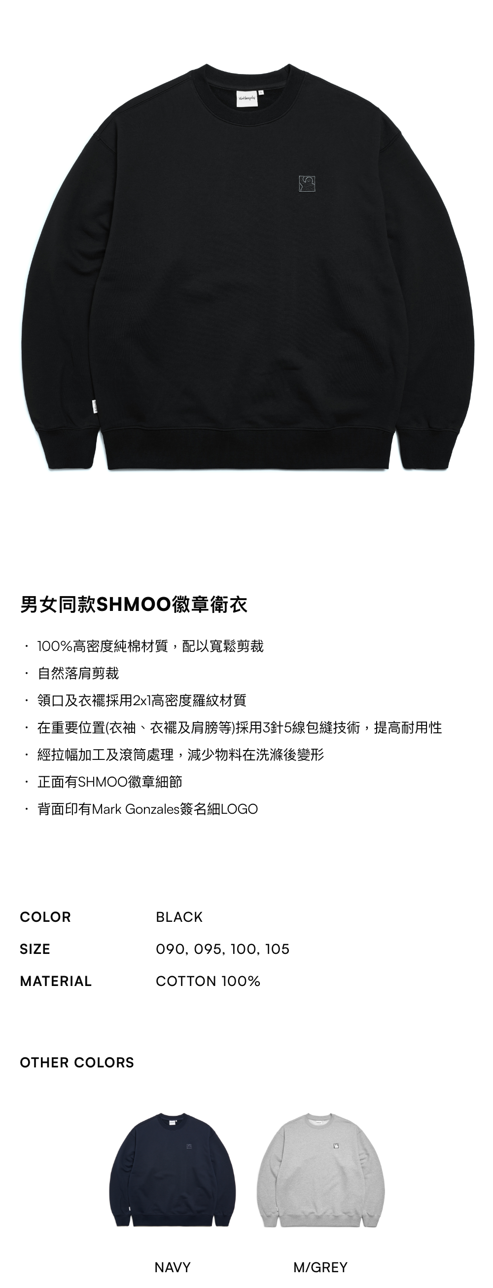 - 100%高密度純棉材質,配以寬鬆剪裁