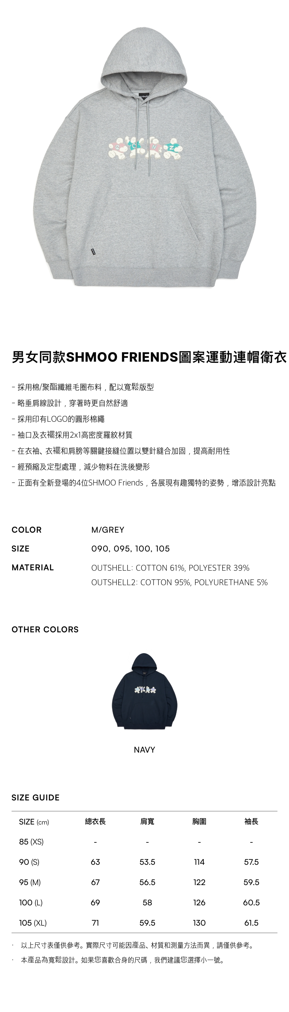 - 採用棉/聚酯纖維毛圈布料,配以寬鬆版型