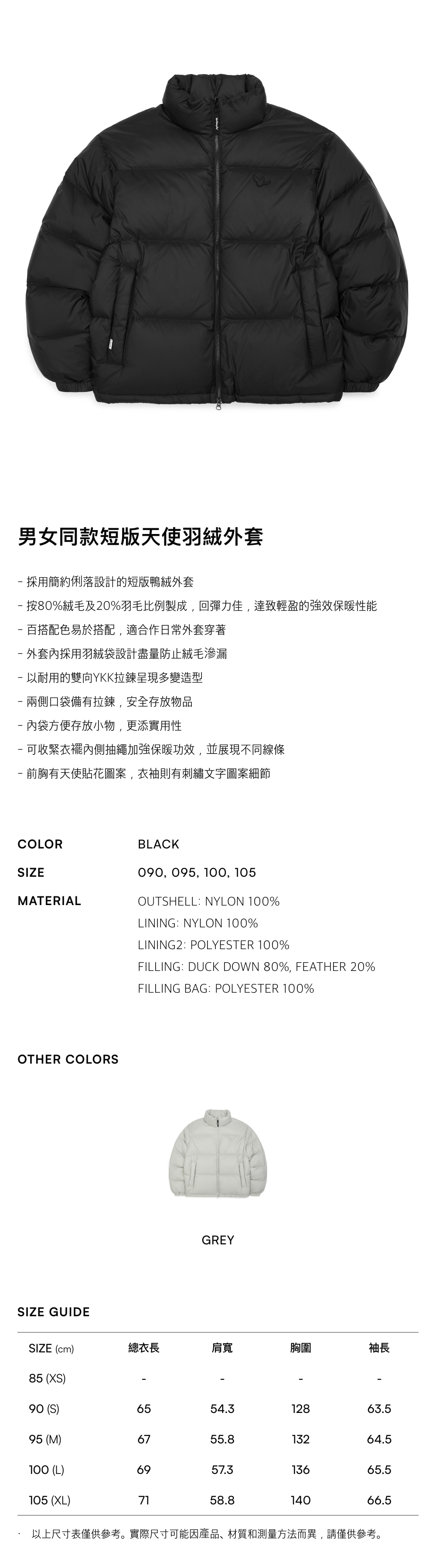 - 外套內採用羽絨袋設計盡量防止絨毛滲漏