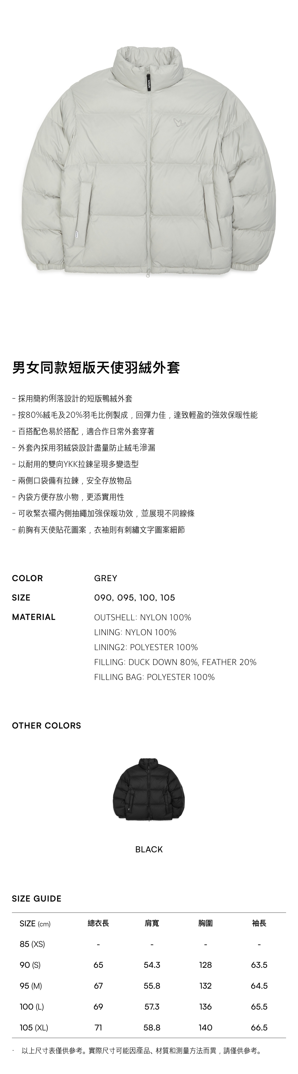 - 外套內採用羽絨袋設計盡量防止絨毛滲漏