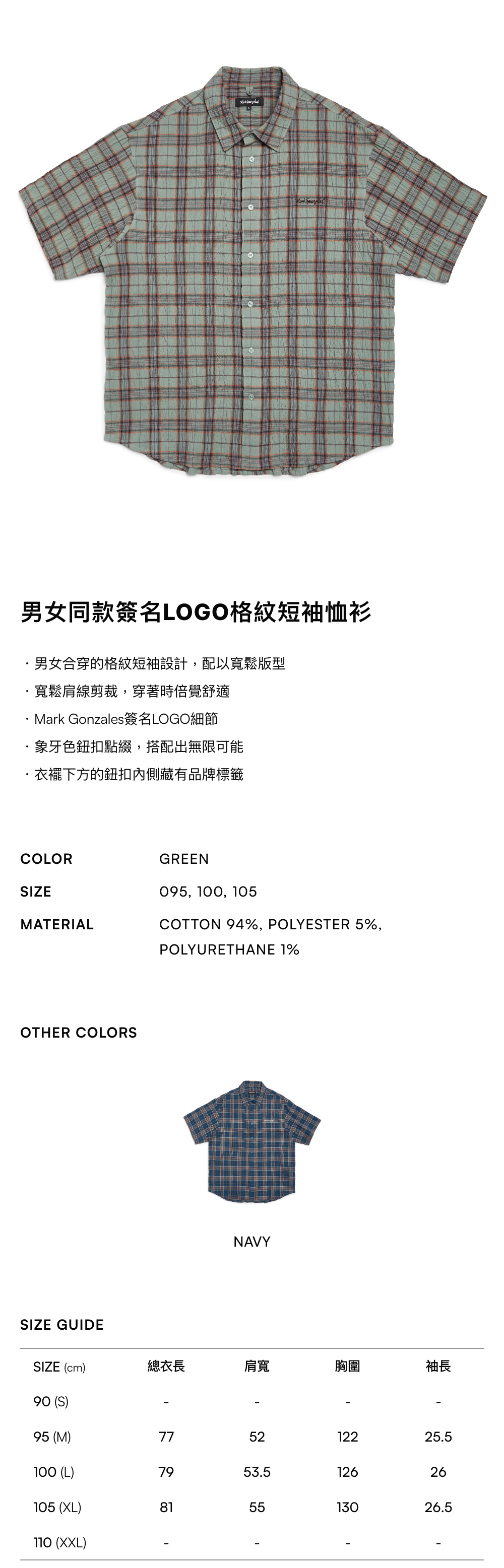 - 男女合穿的格紋短袖設計,配以寬鬆版型