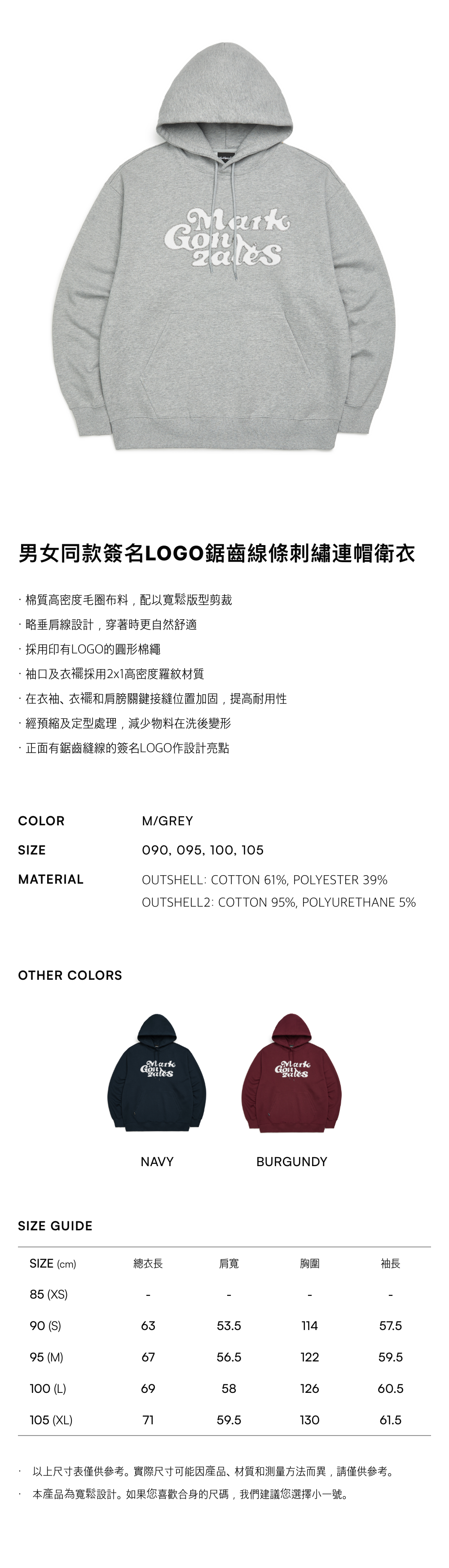 - 棉質高密度毛圈布料,配以寬鬆版型剪裁