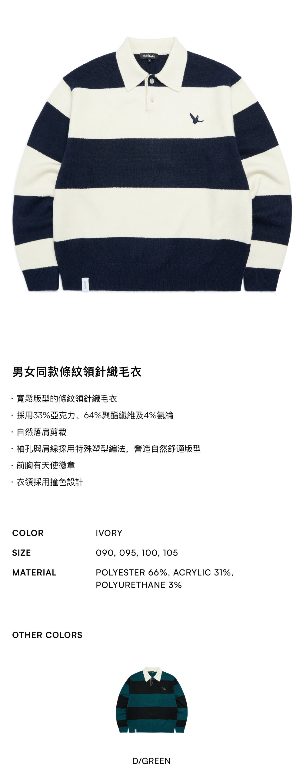 - 採用33%亞克力、64%聚酯纖維及4%氨綸