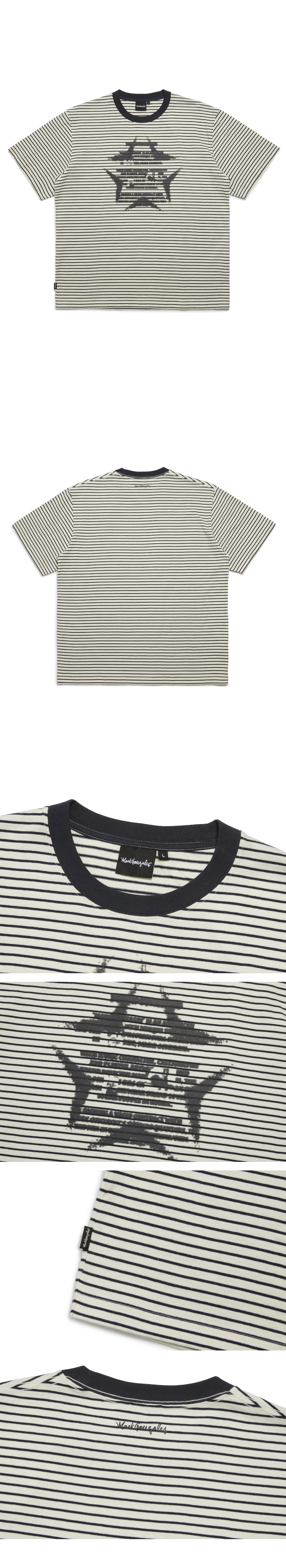 【12% OFF】Unisex Vintage Star Striped Short Sleeve Tee - IVORY