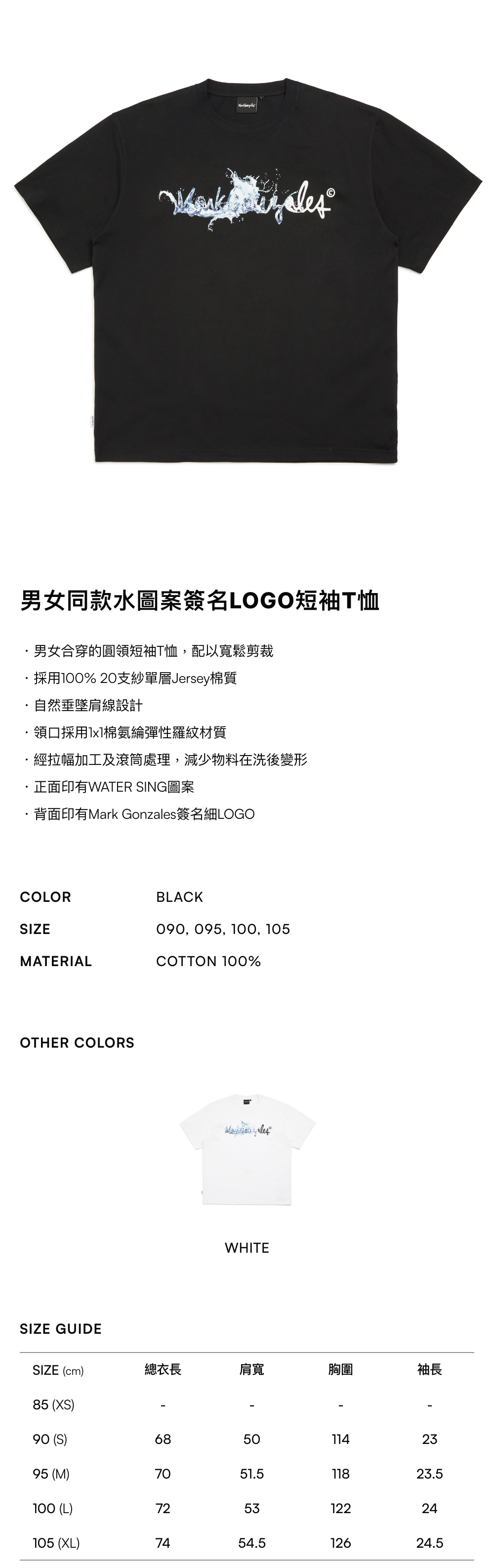- 男女合穿的圓領短袖T恤,配以寬鬆剪裁