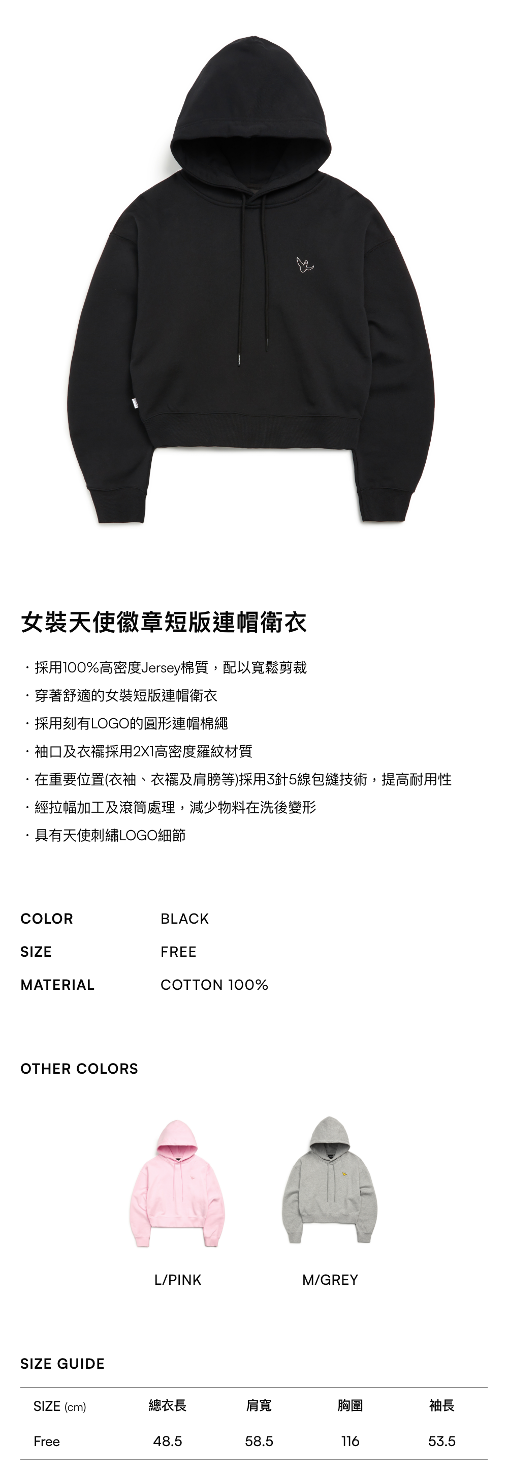 女裝天使徽章短版連帽衛衣