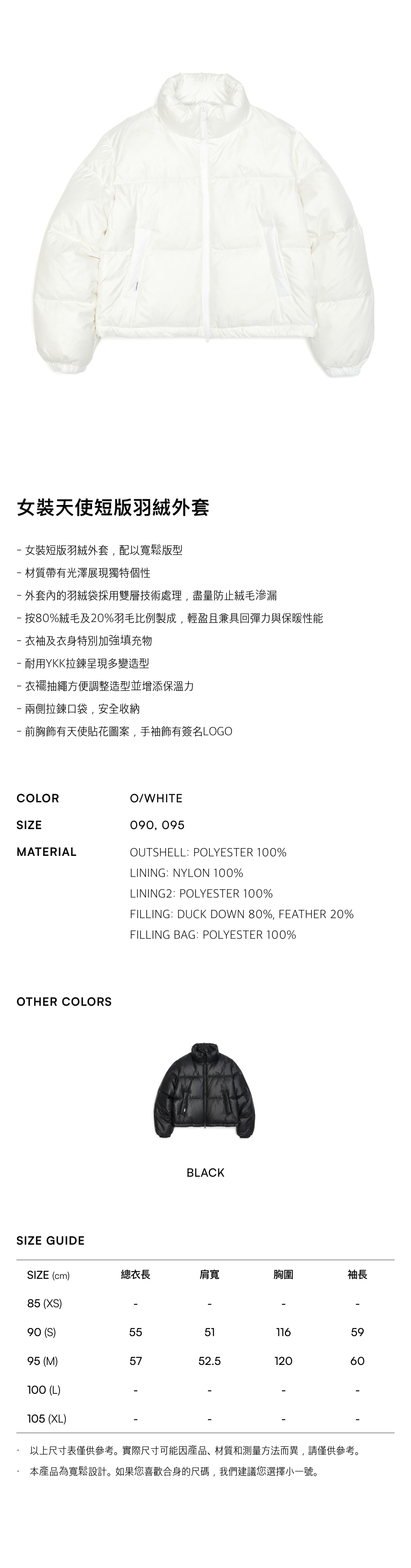 - 外套內的羽絨袋採用雙層技術處理,盡量防止絨毛滲漏