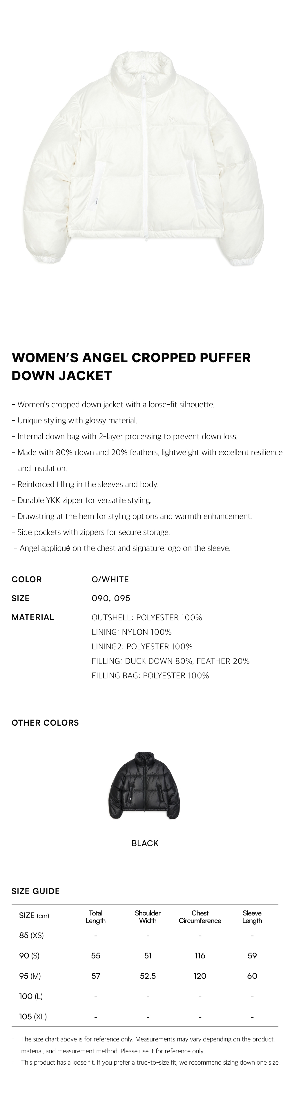 - Internal down bag with 2-layer processing to prevent down loss.