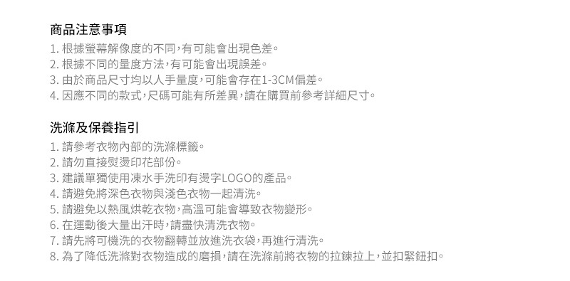 - 經預縮及定型處理,減少物料在洗後變形