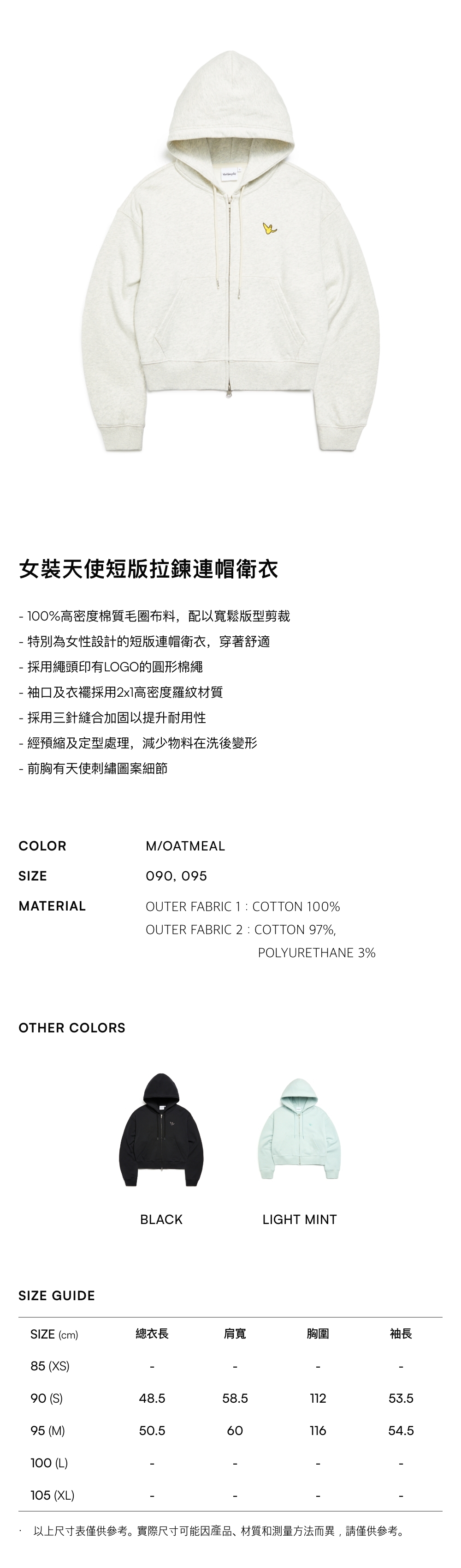 - 特別為女性設計的短版連帽衛衣,穿著舒適