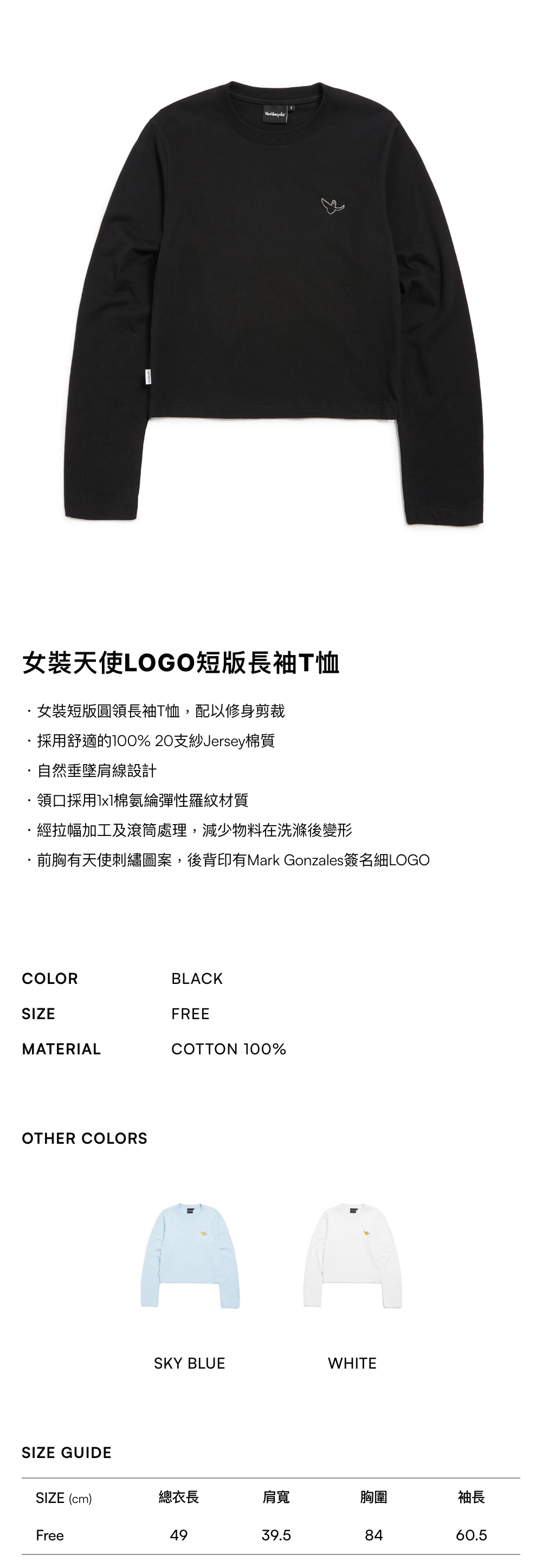 - 前胸有天使刺繡圖案,後背印有Mark Gonzales簽名細LOGO