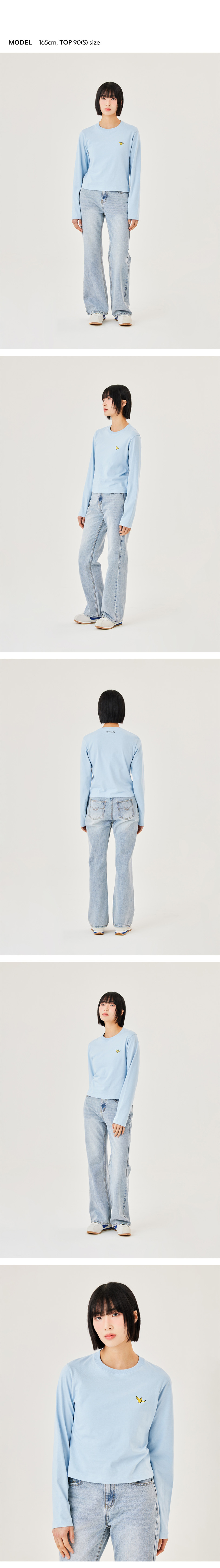 - 女裝短版圓領長袖T恤,配以修身剪裁