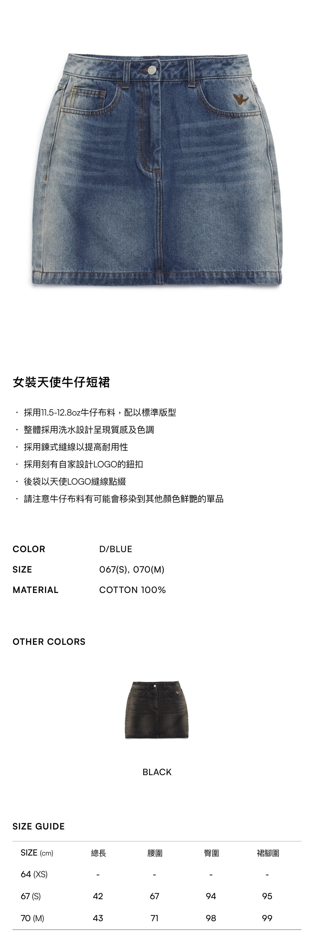 - 請注意牛仔布料有可能會移染到其他顏色鮮艷的單品
