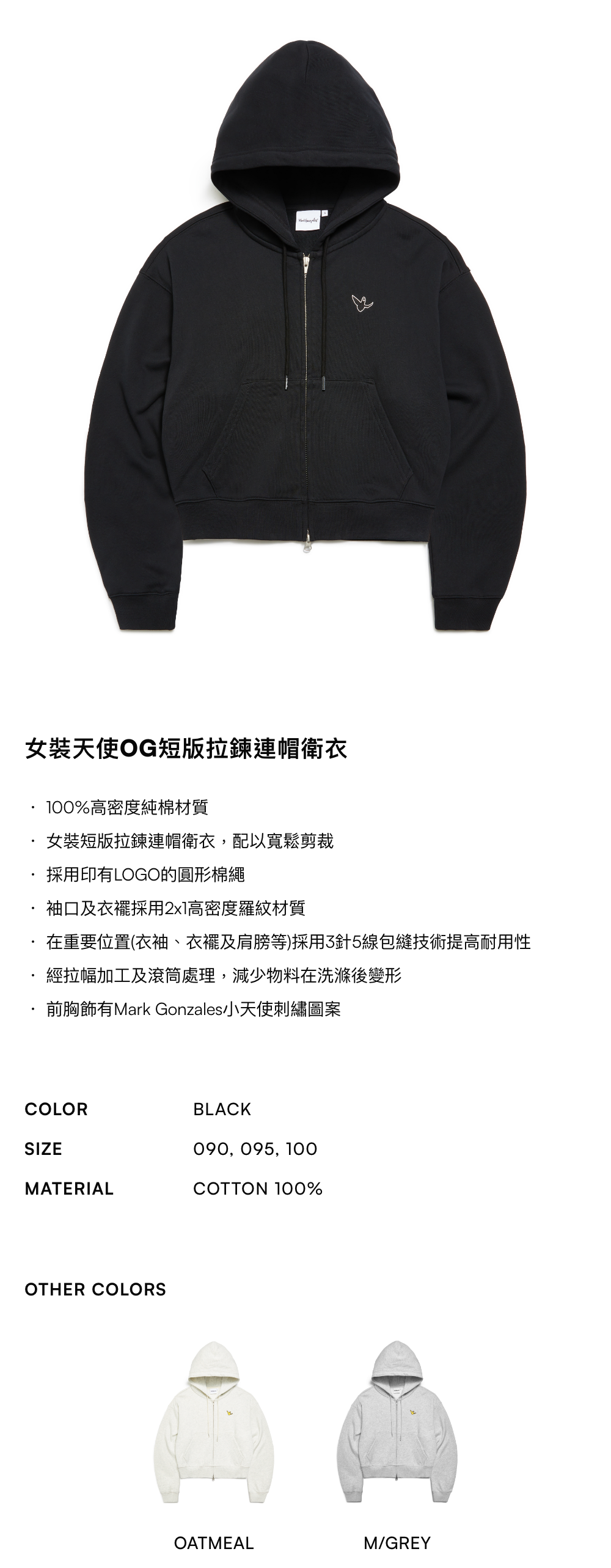 女裝天使OG短版拉鍊連帽衛衣