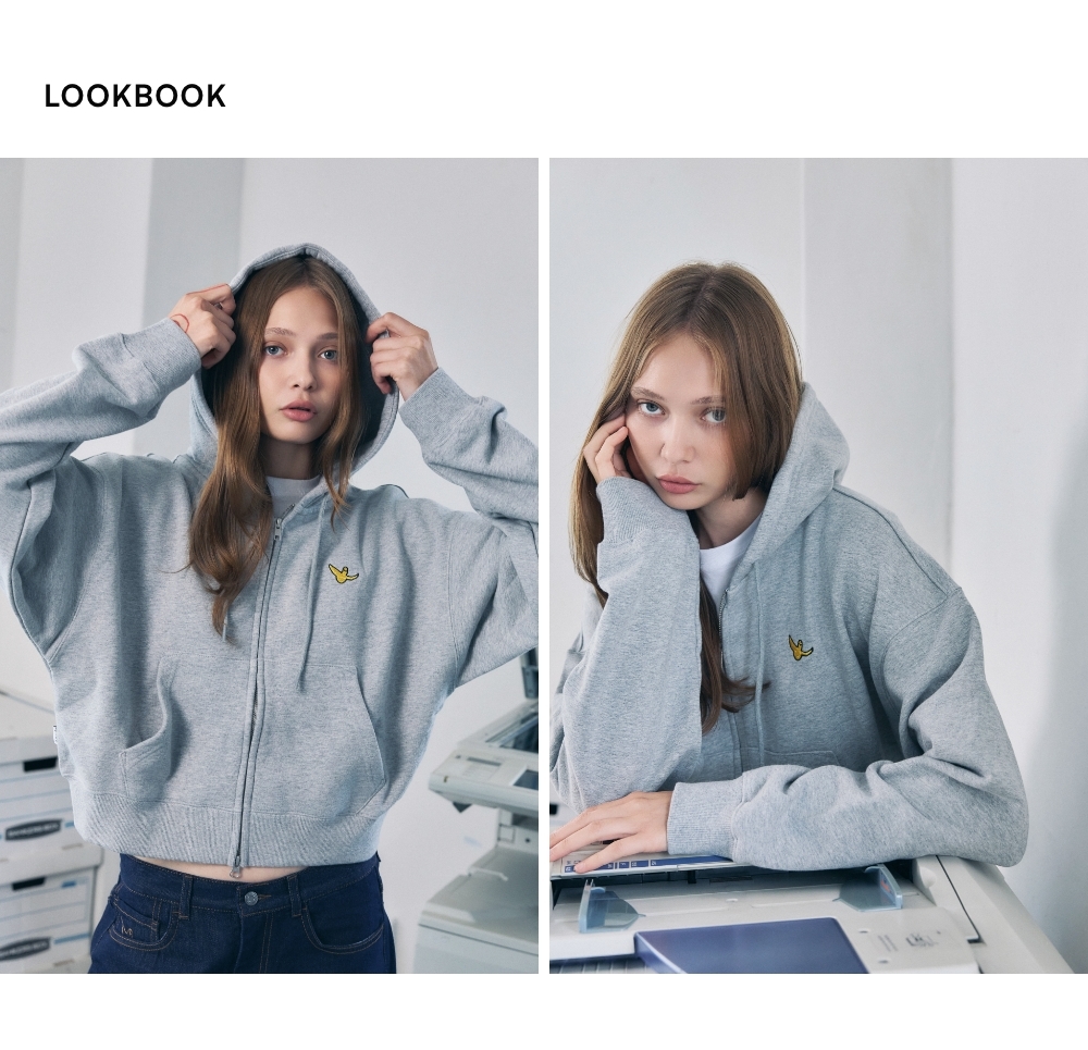 - 女裝短版拉鍊連帽衛衣,配以寬鬆剪裁