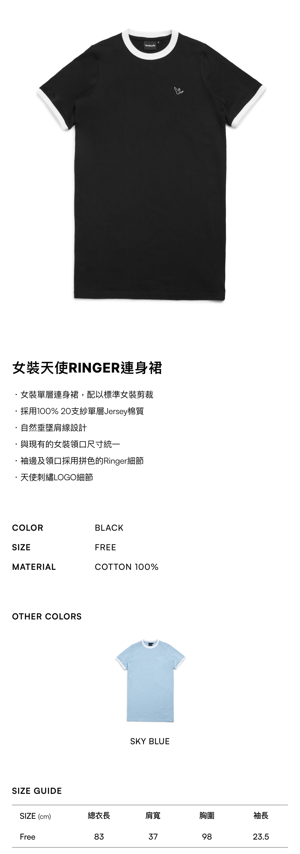 - 袖邊及領口採用拼色的Ringer細節