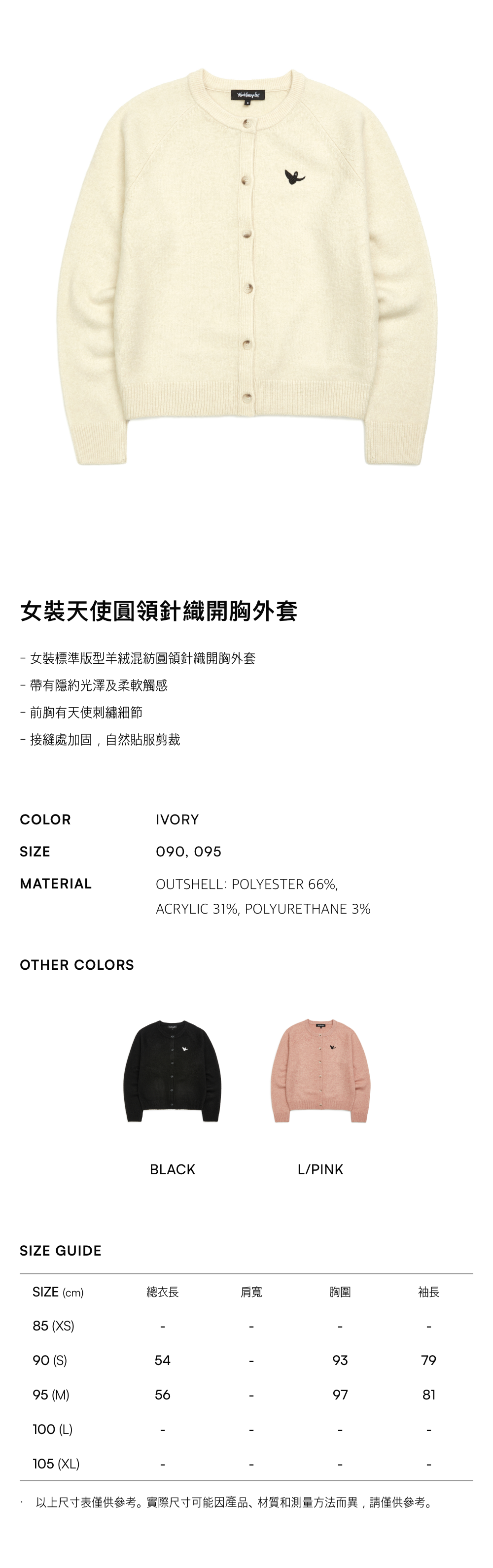 - 女裝標準版型羊絨混紡圓領針織開胸外套