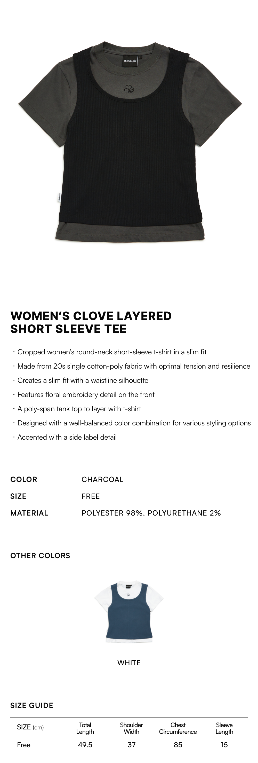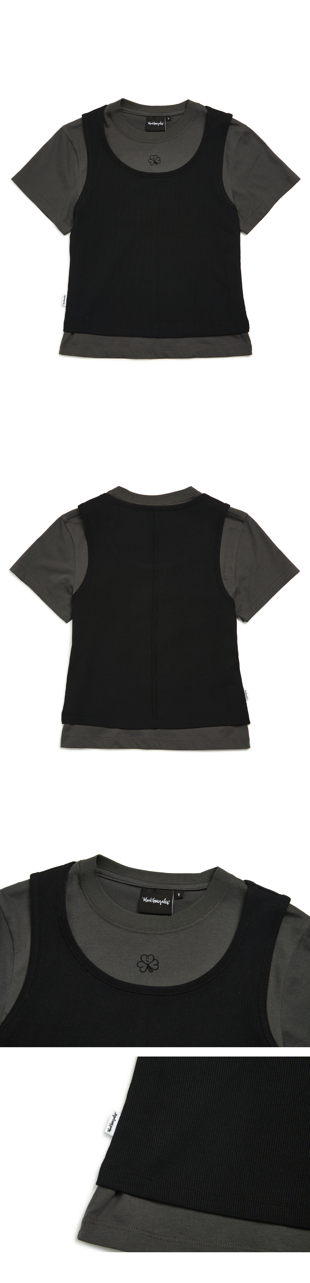 【10% OFF】Women's CLUV Layered Short Sleeve Tee - CHARCOAL