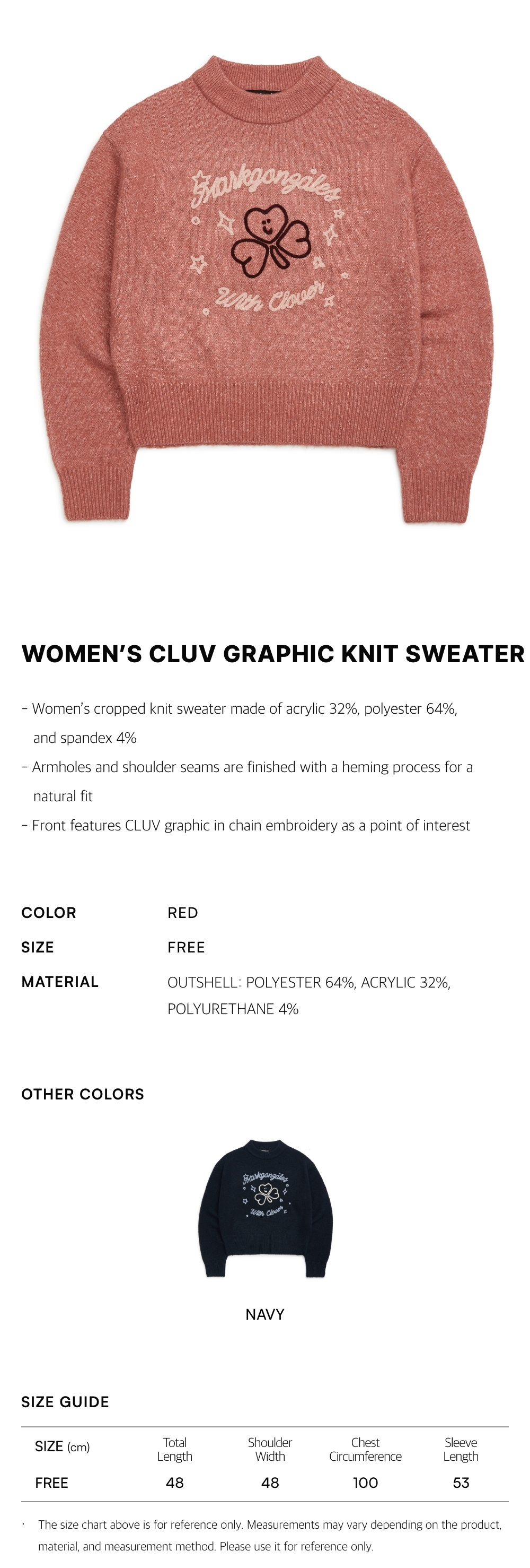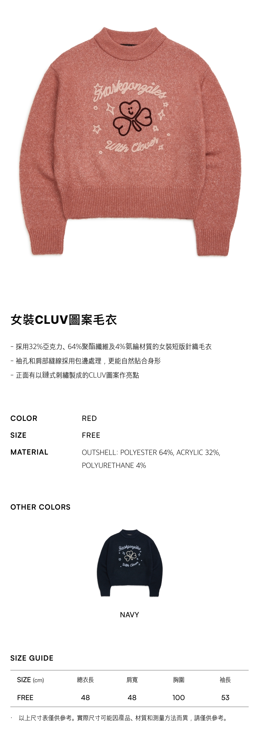 - 採用32%亞克力、64%聚酯纖維及4%氨綸材質的女裝短版針織毛衣