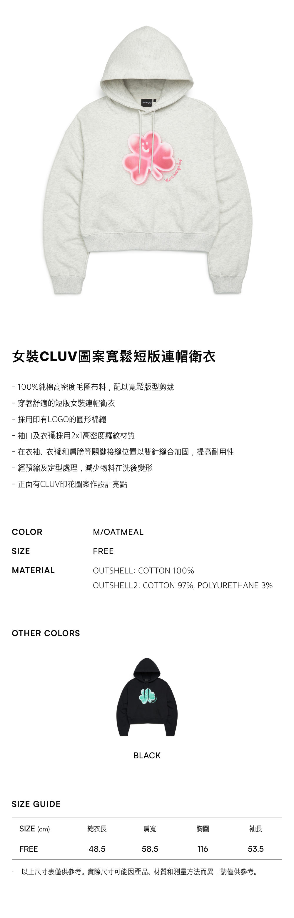 - 100%純棉高密度毛圈布料,配以寬鬆版型剪裁