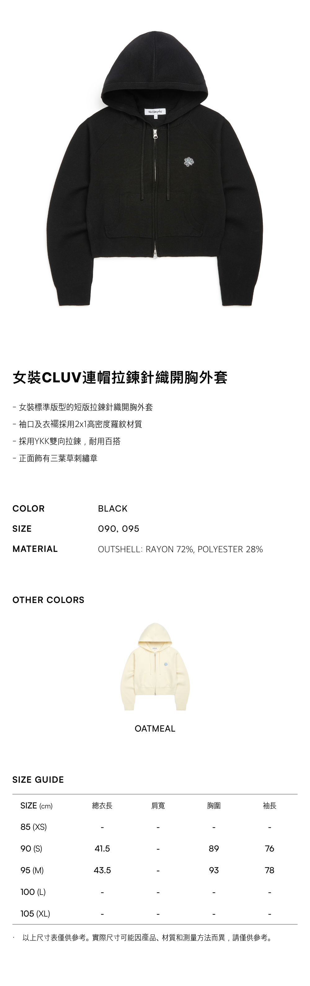 - 女裝標準版型的短版拉鍊針織開胸外套