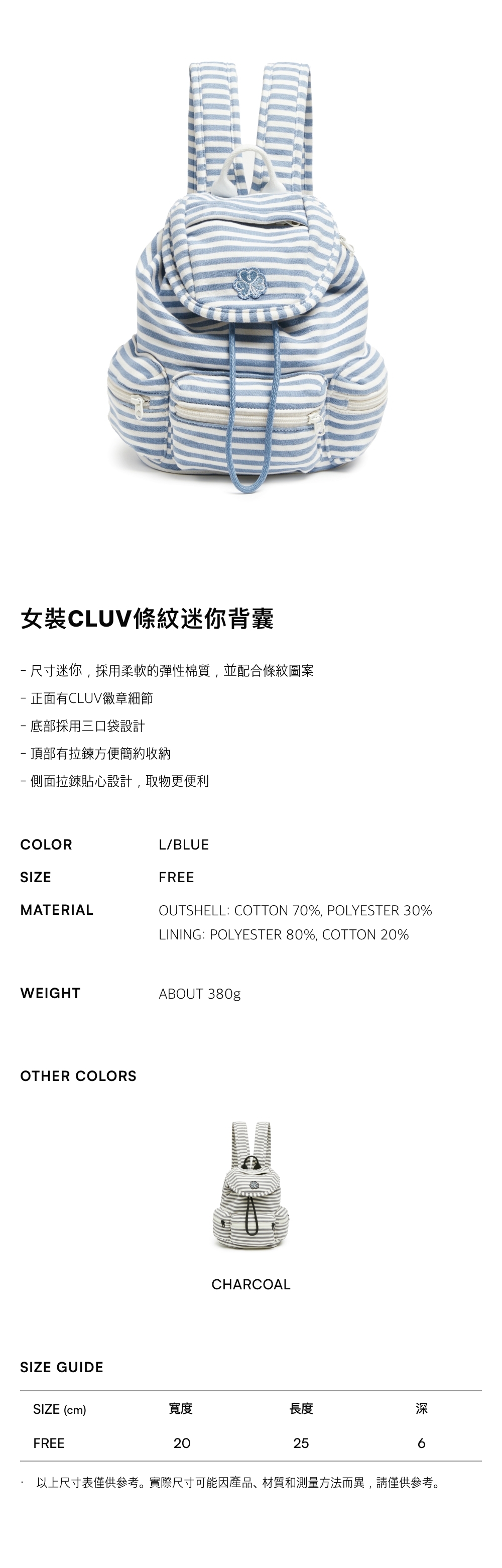 - 尺寸迷你,採用柔軟的彈性棉質,並配合條紋圖案