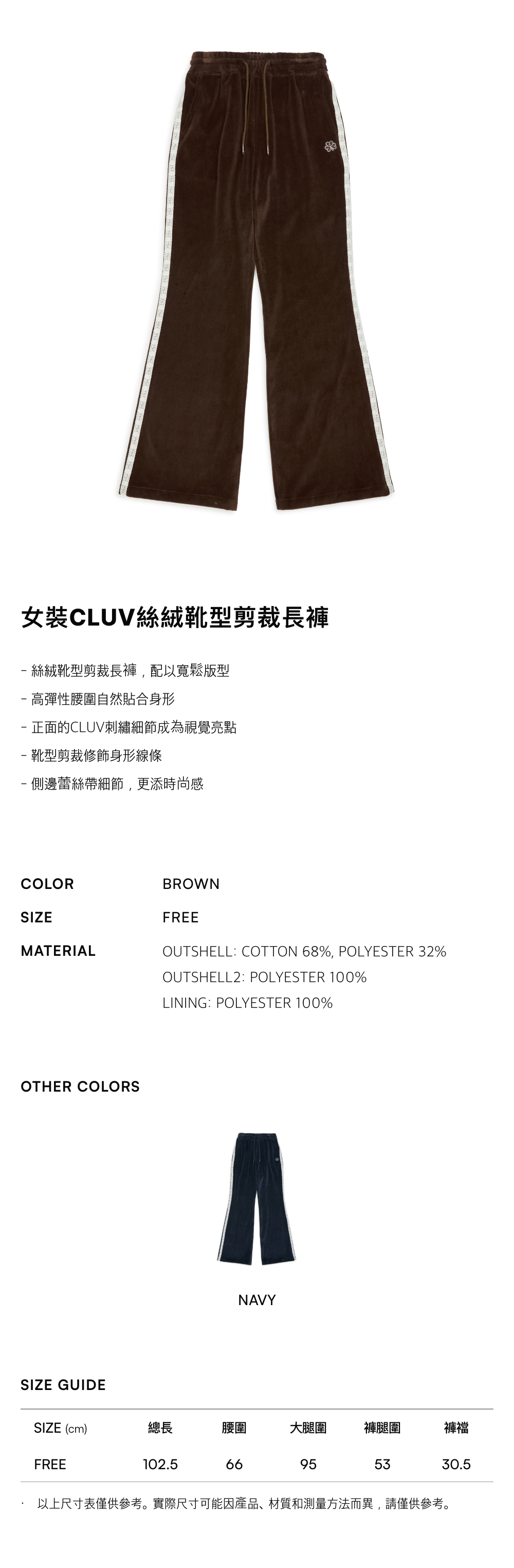 【8折】女裝CLUV絲絨靴型剪裁長褲