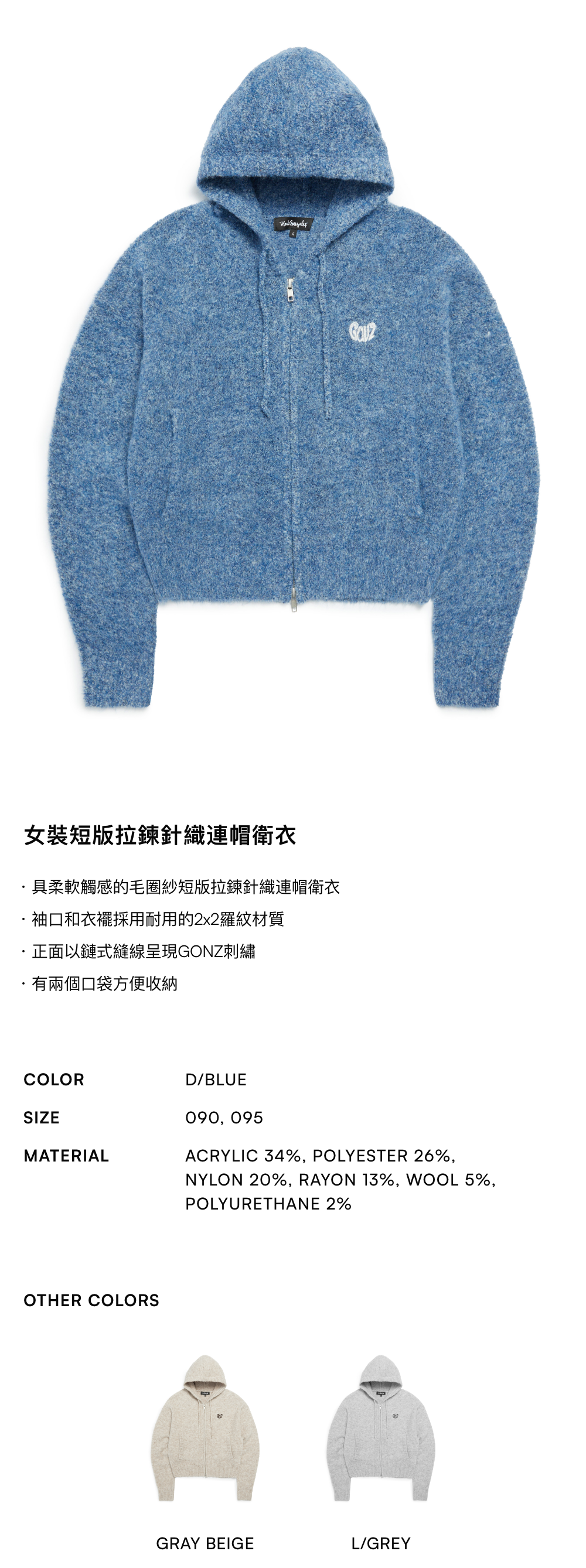 - 具柔軟觸感的毛圈紗短版拉鍊針織連帽衛衣