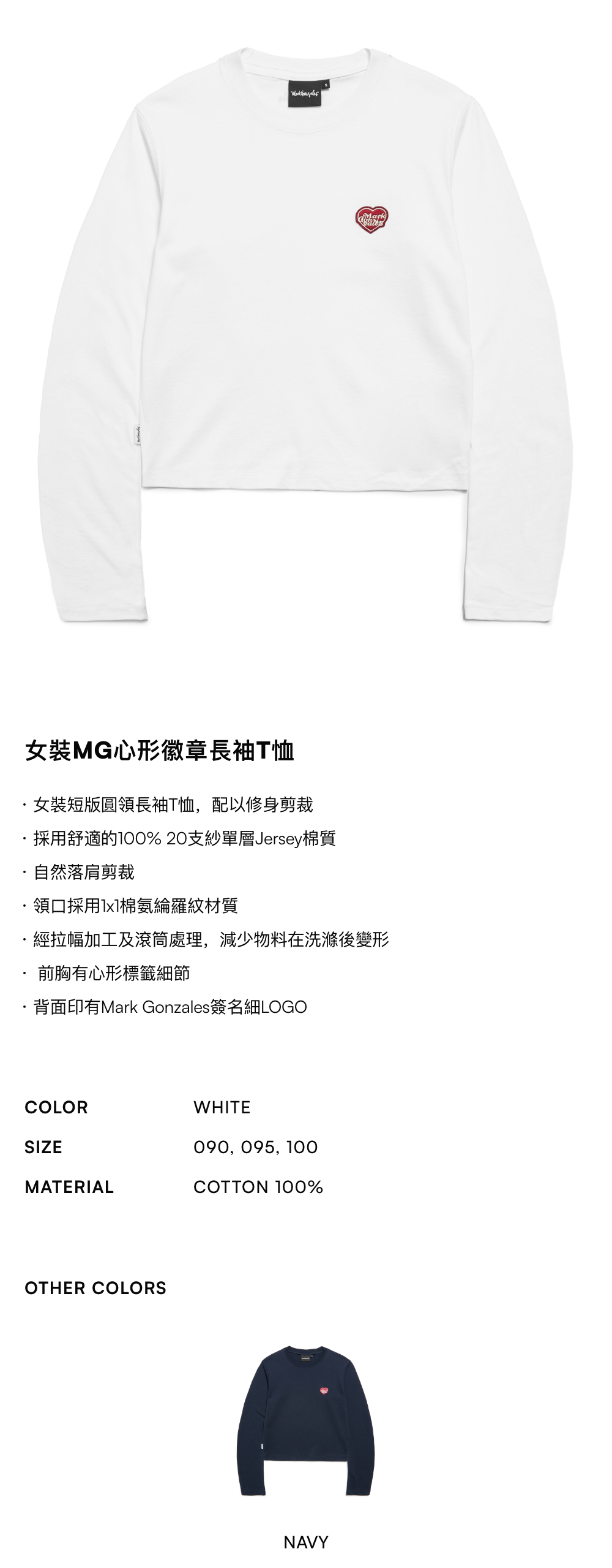 【限時9折】女裝MG心形徽章長袖T恤