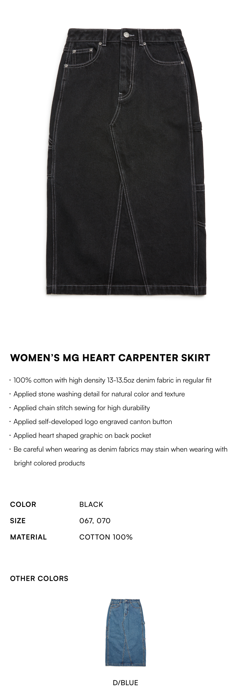 - Be careful when wearing as denim fabrics may stain when wearing with bright colored products