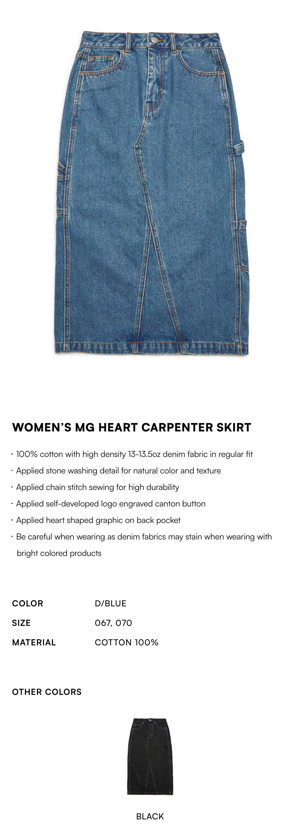 Women's MG Heart Carpenter Skirt - D/BLUE