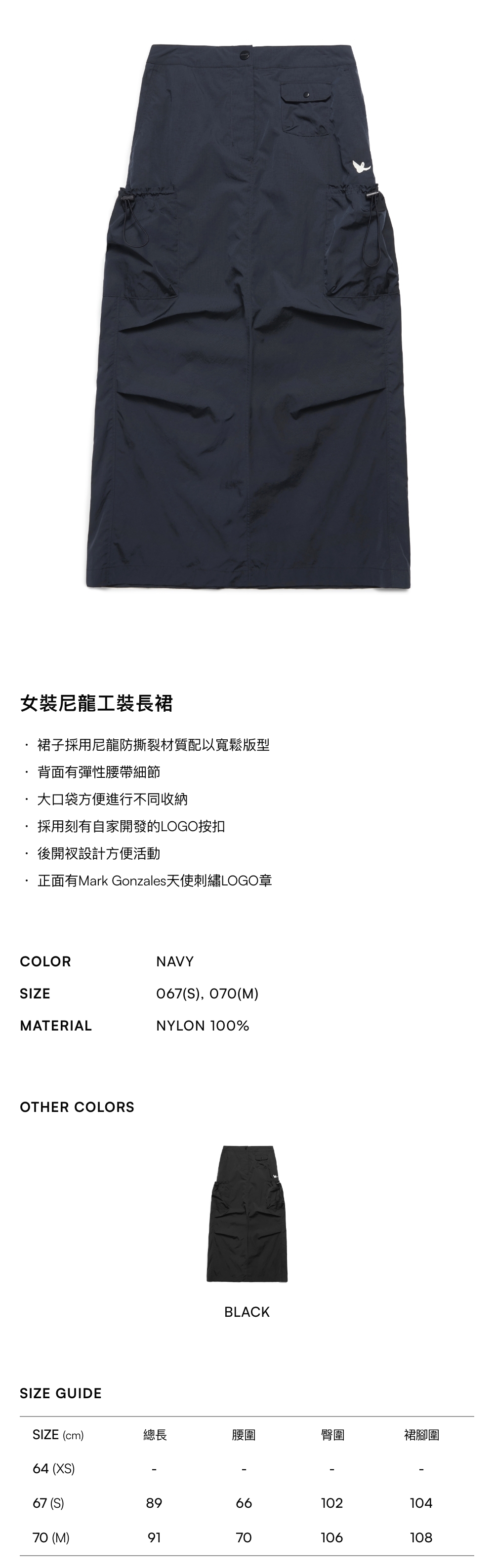 - 裙子採用尼龍防撕裂材質配以寬鬆版型
