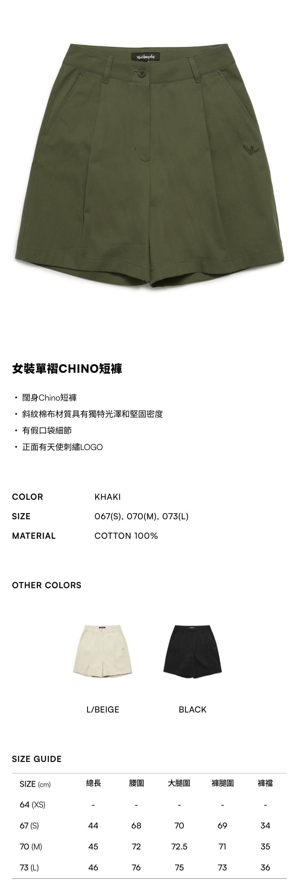 - 正面有天使刺繡LOGO