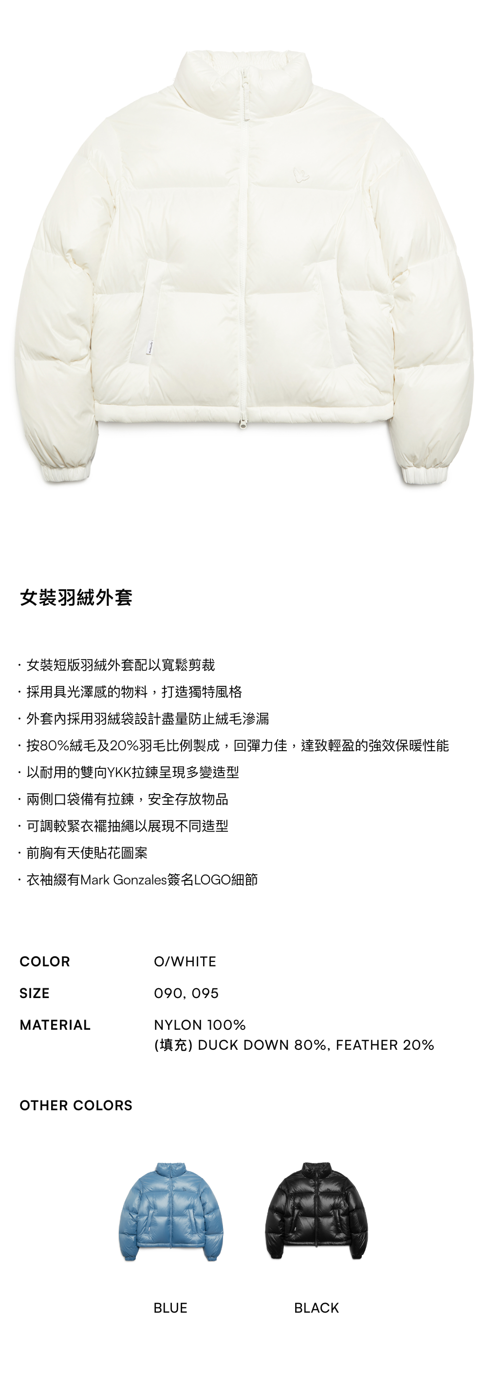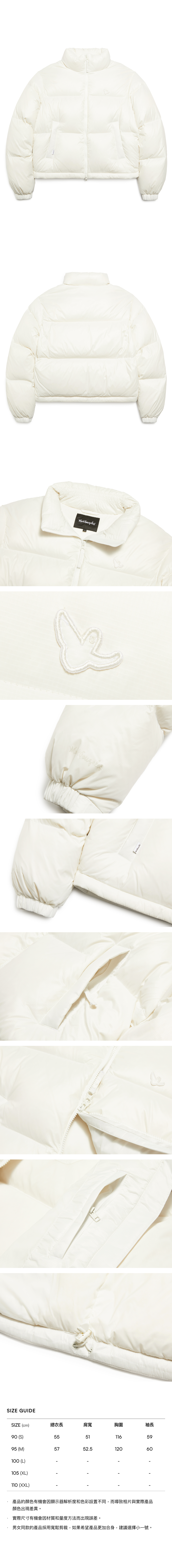 - 外套內採用羽絨袋設計盡量防止絨毛滲漏