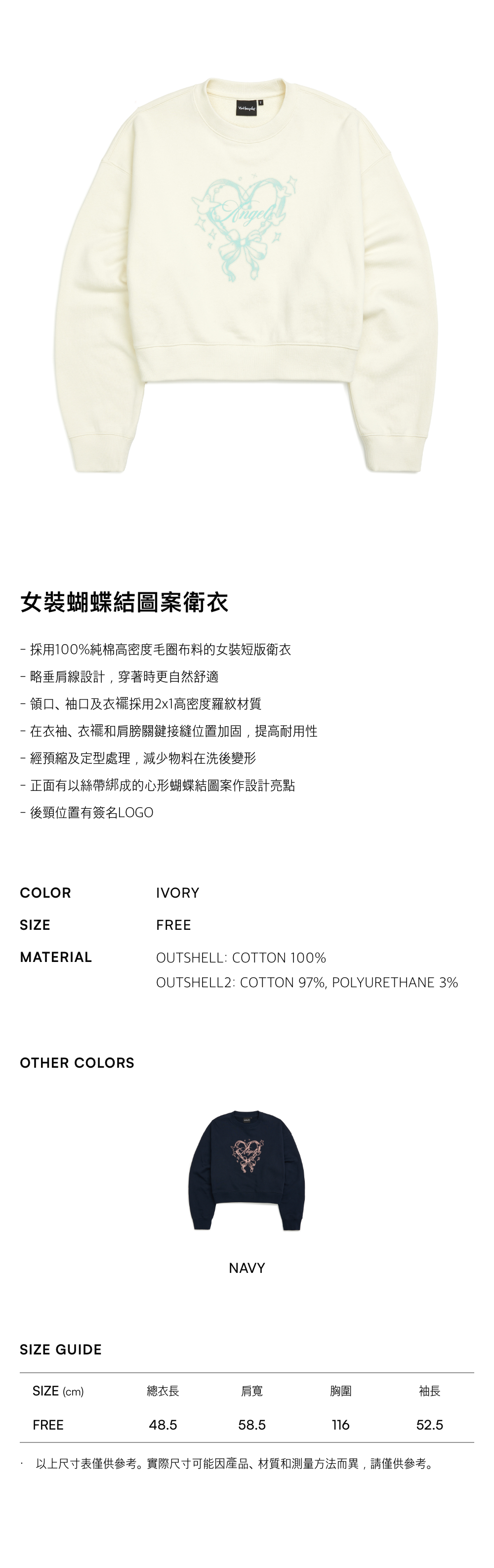 - 採用100%純棉高密度毛圈布料的女裝短版衛衣